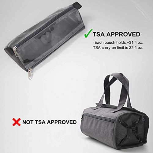 ✅ TSA APPROVED: Each transparent pouch contains just under 1 quart which meets TSA standards. Only one pouch is allowed per person, the rest must go with checked luggage.