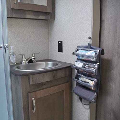 ✅ SAVE COUNTERSPACE: Hang this travel bag for toiletries on a towel rack, wall hook, door hinge, or shower rod/head. Dual-zipper pouches prevent travel accessories from falling out when vertical.