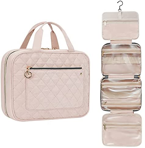 Travel in Style: Great travel makeup oragnizer for overnight staying, a long journey, gym shower, camping, beach and outdoor activities. Roomy enough to hold full-sized bottles.