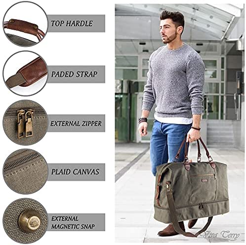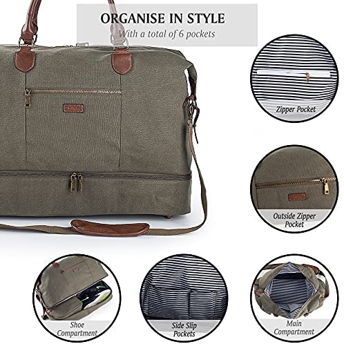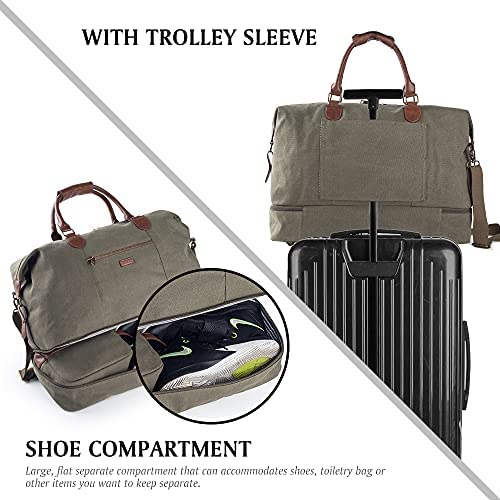HAND-CRAFTED DESIGN: The large and spacious weekender bag is created with premium quality canvas accents. The interior is finished with a luxurious Strip cotton lining that looks fantastic and protects your items wherever you take them.