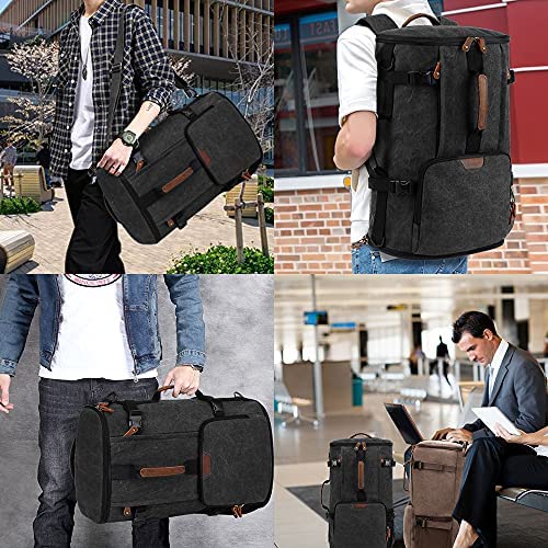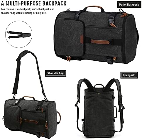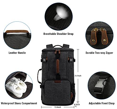 ★DURABLE MATERIAL & SOLID. Made of high quality canvas, leather handle and durable lining, durable metal zippers and buckles. Ensure a secure, long-lasting usage. Serve you well as professional carry backpack, can used as work bag, college school backpack, bookbag, overnight backpack and weekeder travel bag. Perfect for hiking, weekend trip, airline flight, outdoor camping, and school.