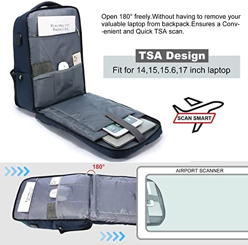 🔒【Anti Theft & TSA Design】: With anti theft lock and a hidden pocket on the back, this business work backpack protect your purse, passport, phone and valuable items from thieves. Smart TSA design allows you to quickly pass through airport security checkpoints without having to remove your valuable laptop from backpack.