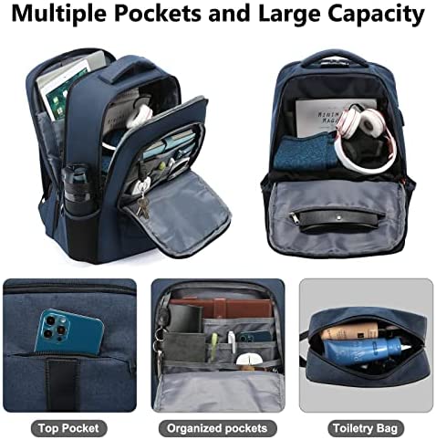 💻【Multiple Pockets & 17 inch Large Capacity】: This laptop backpack travel comes with separate computer compartment, multiple pockets and wash bag. Computer compartment can hold 17Inch, 15.6 Inch laptop. Front compartment is designed to put your pen, mobile phone, notebook, making your items more organized. Additional toiletry bag is suitable for travel accessories.