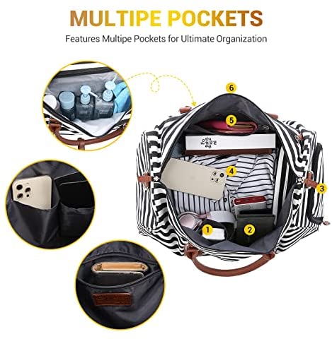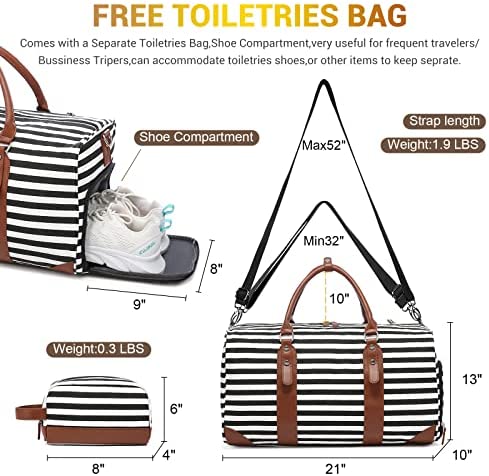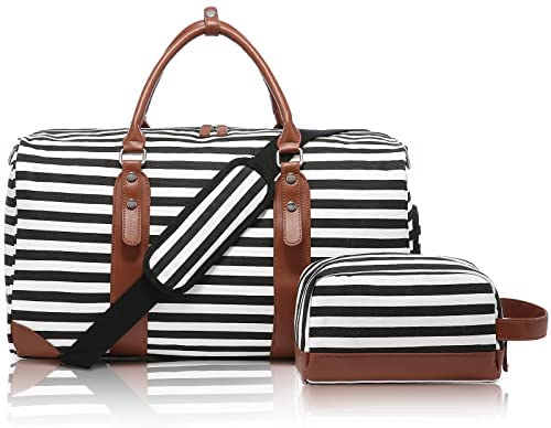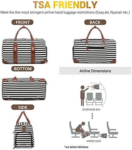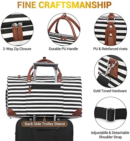 ❤️【HAND-CRAFTED DESIGN】 The large and spacious overnight bag is created with premium quality, never out of style stripe canvas and soft brown faux leather accents. The interior is finished with a luxurious grey cotton lining that looks fantastic. Whether the stripe colour of the womens travel bag or the choice of materials, they are carefully hand designed by the designer. It’s very fashionable, it will make you the focus of everyone.