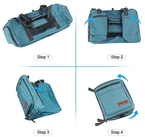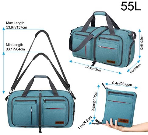 **Large Capacity 55L and 1.6 pounds(Product Dimensions (Unfolded Size): 24.4 x 12.6 x 11 inches,(Folded Size):10.6 x 9.4 x 1.9 inches, easy to store)** This folding bag has one spacious main compartment and 7 separate pockets. Made of honeycomb 600D polyester fabric, waterproof & tear-resistant,and premium metal SBS zippers and reinforced major stress points.