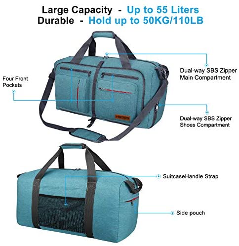 Travel Duffel Bag, 55L Foldable Duffle Bag with Sh