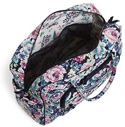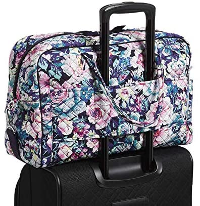 Signature cotton is colorful and lightweight. Duffel Travel Bag style. Exterior features 1 slip and 2 zip pockets. Interior features 5 mesh pockets. Trolley sleeve. Carry-on compliant. Removable strap. Zip closures. Capacity 29 L. Spot Clean. Carry On Compliant.. Vera Bradley is known for our travel bags for women, men, and kids. We offer cosmetic travel bag, make up travel bag, toiletry travel bag for women, travel bags for men, and travel bags for packing. Our assortment of travel bags includes duffels, overnight bags, lugagge, weekender bags, make up organizers, travel organizers, luggage tags, and more!